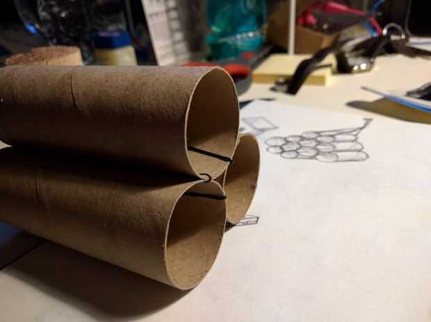 Ahora viene la diversión parte. Clip a rollos de papel con las horquillas. Asegúrese de fijar ambos lados de los rollos! Porque es modular, usted puede poner juntos tantos rollos como quieras en cualquier patrón que desee.