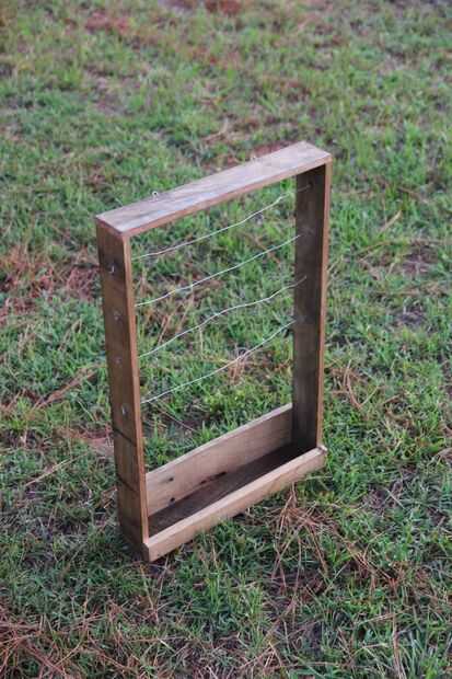 El armazón está hecho de un listón de una plataforma que una vez césped. La espalda y delantera son recortes de otra plataforma utilizada para enviar suministros de movilidad.