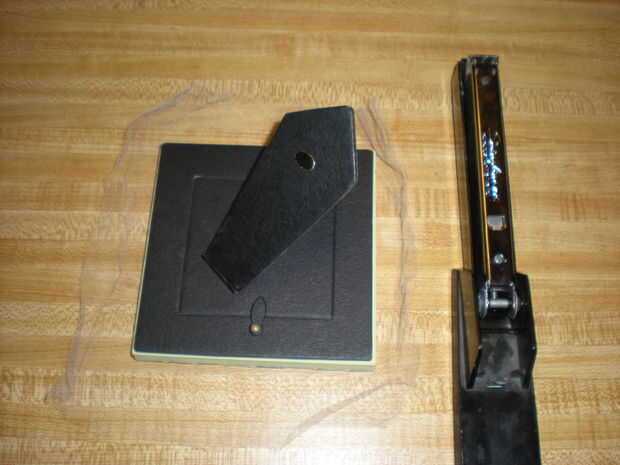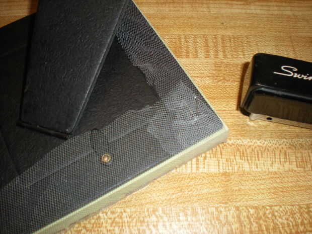 Estire el tul para que sea capaz de soportar el peso de los pendientes. Las cuatro esquinas en la parte trasera de la grapa y entre grapas para apoyo adicional. Aquí es el marco completo.