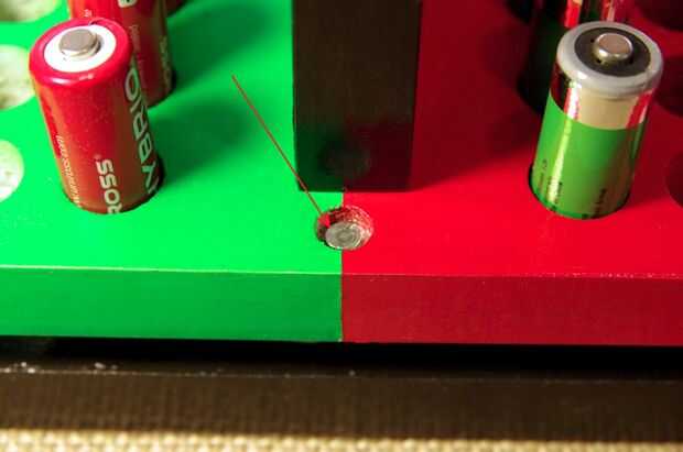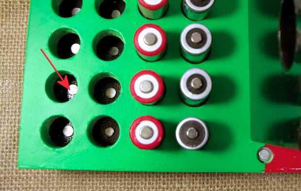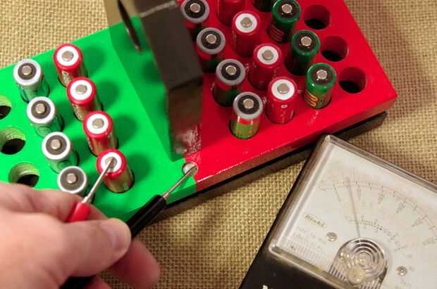 Cuando se quita una batería agotada desde el dispositivo, va a la sección roja del organizador, listo para ser cargado. Después de cargar, va a la sección verde, lista para ser usado otra vez. De esta manera que las baterías no sólo se almacenan ordenadamente, pero también el seguimiento de los cargada y descargados.