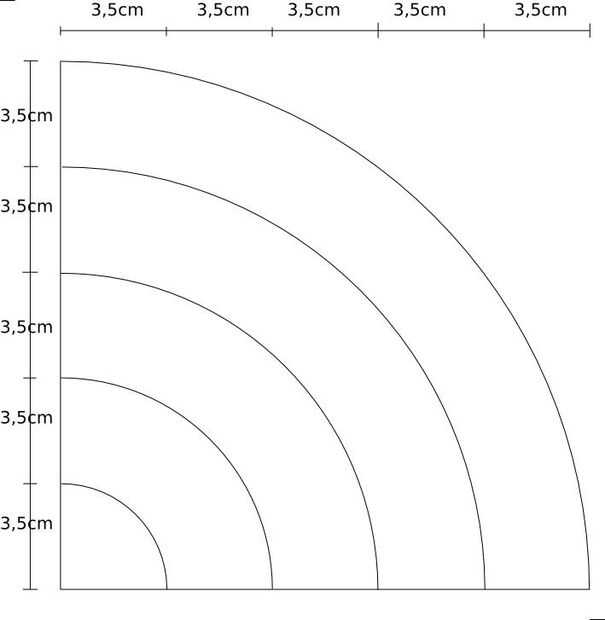 Para la esquina, el piso es un cuarto de disco de diámetro de 35cm mientras que los estantes son tiras redondas como se muestra en esquema.