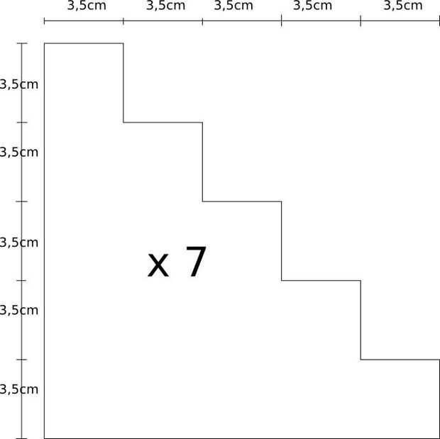 Para las 2 partes rectas 27cm de largo (incluyendo el almacenamiento de herramientas) y la parte de la esquina, deberá 7parts como la representada aquí.
