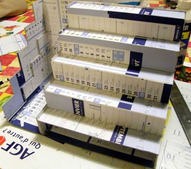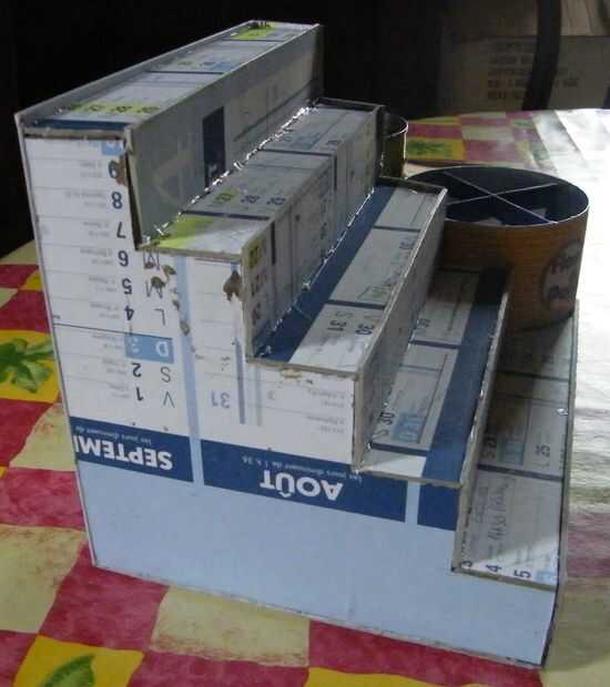 Estantes detrás se hacen en cartulina fuerte para estantes rectos y en cartón delgado para esquina. Necesitan y sobresalga 2mm por encima del estante superior para evitar el bote cae detrás de la plataforma. Sólo medir la plataforma final para saber la medida exacta como debe depender usa cartón grueso.