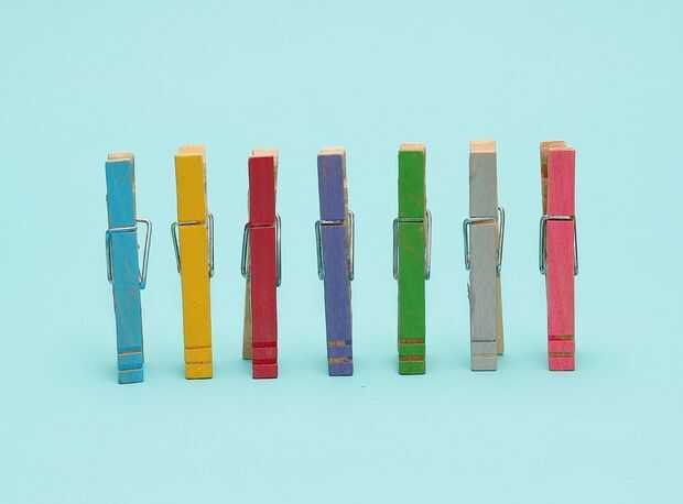 Cada pin de paños de pintura un color que te gusta. Usé el azul, amarillo, rojo, púrpura, verde, plata y rosa.