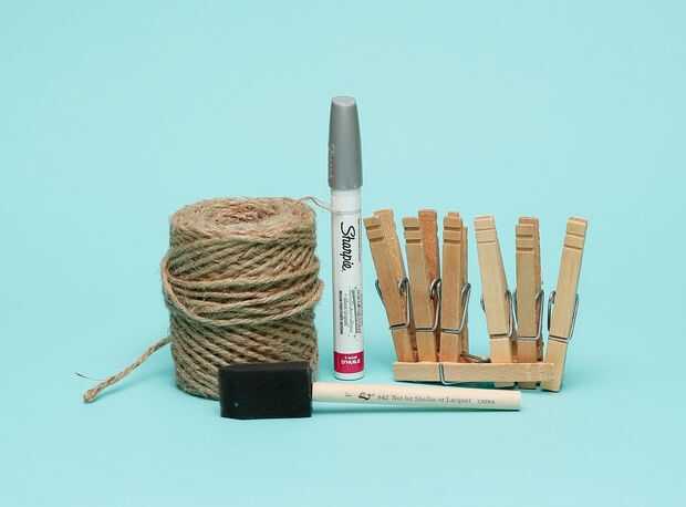 Todo lo que necesitas son unas pinzas de ropa, algunos cordeles o cuerdas, un pincel, un marcador de la pintura y algunas pinturas. Tenía arte pintura en mano, pero usted podría incluso utilizar pintura de niño. Esto no tiene que ser perfecto o durable.