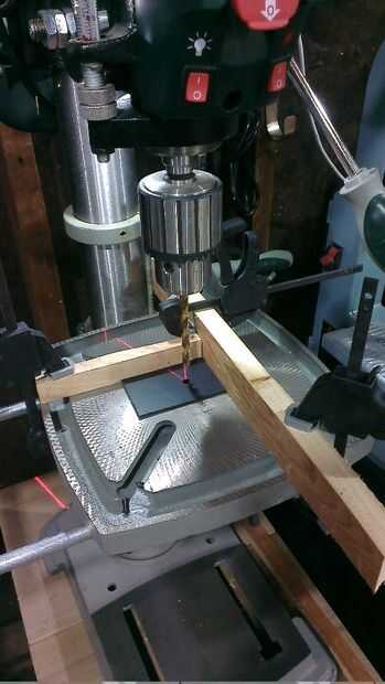 La tirada encima de una broca de tamaño adecuado para la barra que usted eligió. Usé una 1/4 broca en mi taladro. Configurar una plantilla por lo que con seguridad puede Ares a través de sus pilas de divisores.