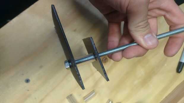 Apriete la tuerca hasta el final de la barra e iniciar el montaje de los separadores y distanciadores. Ayuda a saber qué orden desea que los alicates para que los espaciadores apropiados y separadores se utilizan. En la foto no es tubo termocontraíble colocado en los extremos de la barra para evitar que se rayen los lados del cajón.