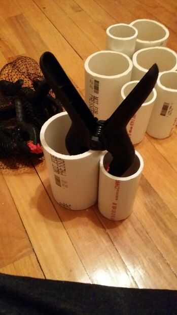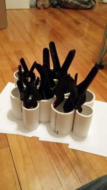 estoy en el segundo año de un proyecto para organizar mi garaje una vez por todas. Estaba tratando de averiguar una forma para guardar los bolígrafos, lápices y todo lo largo flaco que tengo y se me ocurrió esta idea para usar algunos PVC para que un