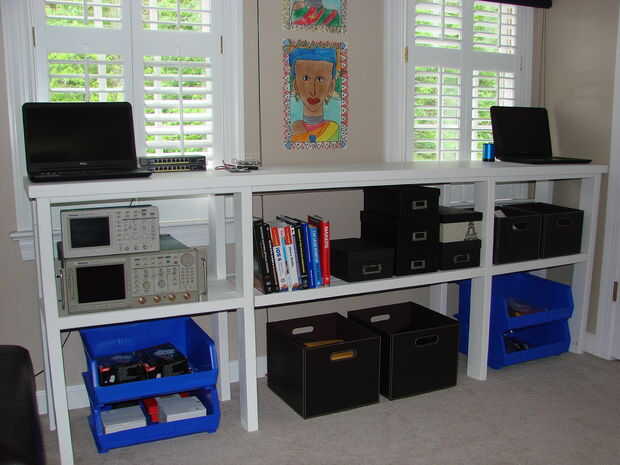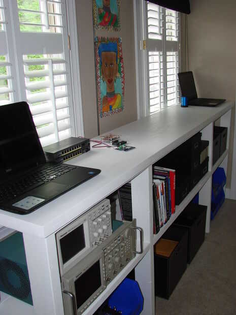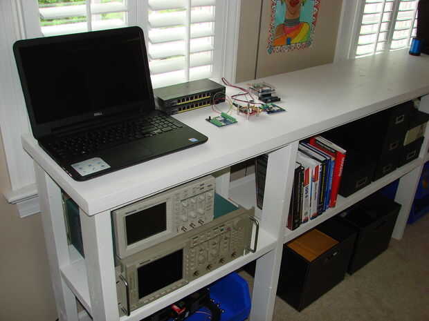 Yo recientemente tomó en un proyecto que requiere un área de trabajo lo suficientemente grande para casa prueba de instrumentos, equipos y otros objetos, así como proveer una superficie de trabajo bastante larga. Perdido el tiempo tratando de encontrar algo adecuado en la web. Todo parecía demasiado caro o demasiado endebles o ambos. Así que me puse sobre la creación de un área de trabajo de 8 pies desde el principio. ¿Por qué 8 pies? Porque ese era el espacio disponible!