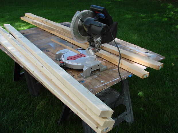 - 2 x 4 x madera de construcción 96. Se necesita 9 piezas. Este proyecto será mucho más fácil si usted Asegúrese de que la madera es recta. Tuve un momento difícil con la mía porque algo de él fue torcido y se inclinó de mojarse durante su vida anterior como una suspensiones de parte de la pintura de aerosol.