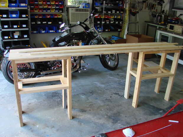 Se construirá 2 "mesas" que se unirá con 40" 2 x 4 largos para crear la apariencia de una sola unidad. El mostrador de pie 8 lazos de todos juntos.