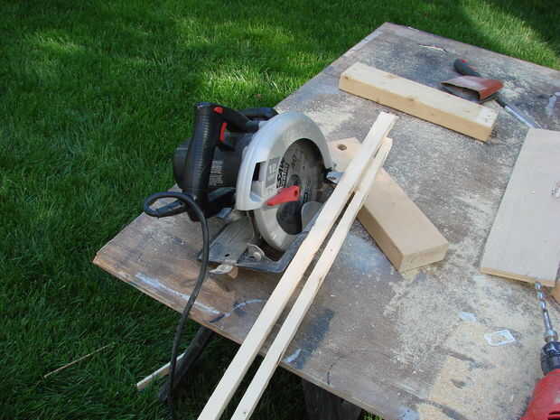 Luego corte la tira de 8 x 2 a la mitad con la sierra circular. No es necesario ser preciso. Aproximadamente en el centro es todo lo que necesitas. Si tienes una mesa de la sierra, es la forma preferida de hacerlo. Manejar una sierra circular y la pieza delgada de madera al mismo tiempo es complicado. Por favor tenga cuidado, esto podría fácilmente convertirse en una situación peligrosa. Una sierra circular más rápido que se puede decir que ay se retira el dedo. Usted puede comprar 1" moldear las tiras directamente desde la tienda de hardware. Elegí a rasgar un pedazo barato de madera para ahorrar dinero. No dejes que el deseo de tener una estructura rentable crear una situación peligrosa para sí mismo.