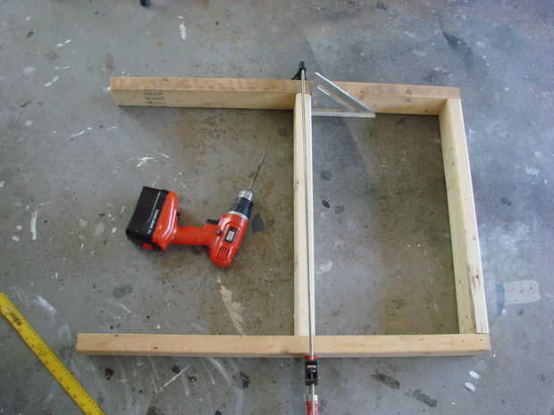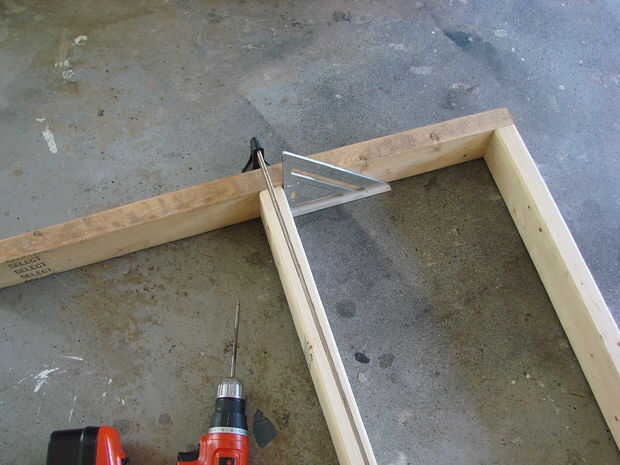 Use una escuadra de enmarcar para asegurarse de que todo es cuadrado. Ayuda a hacer esto sobre una superficie plana para asegurarse de que la alineación de las piernas derecha e izquierdas está ajustada correctamente. He usado el suelo de mi garaje que no es perfecto pero lo suficientemente bueno para este trabajo. Inserte los tornillos de agujero de bolsillo en cada bolsillo. Para comprobar la Plaza después de cada tornillo para asegurarse de que nada cambia en usted. Encontrar mejor conducir un tornillo en el izquierda, cheque y luego conducir un tornillo en a la derecha. Vuelva a comprobar para la Plaza y continuar con los tornillos restantes.