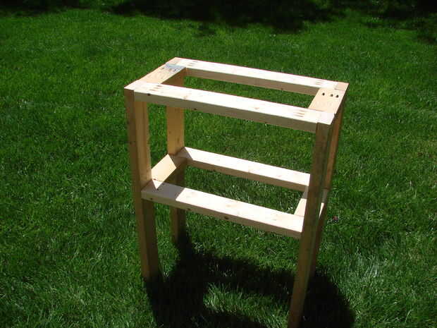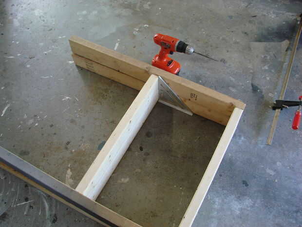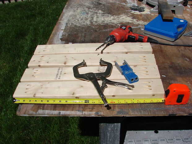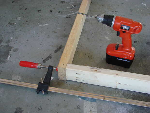 Empieza Asamblea por tomar 2 x 35,5" pieza piezas y 24". Aplique pegamento en los extremos de la 24" pedazo de pieza y luego la abrazadera 24" entre los dos 35,5" las piezas con los orificios de bolsillo mirando hacia afuera.