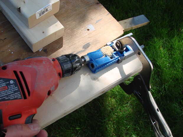 Creación de los agujeros es muy sencillo. Asegúrese de que la plantilla se ajusta al grosor de la madera. Asegúrese de que el collar de taladro bit parada es el correcto espesor de madera. Sujetar la plantilla a la madera usando una abrazadera de Kreg o una abrazadera de soldadura. Inserte la broca en el orificio de acero endurecido y hacer el bolsillo. Mi Kreg jig tiene 2 orificios por lo que tengo que volver a colocar y apretar para hacer el tercer agujero de bolsillo. Su abundancia de video informativo del Kreg y otros en YouTube.