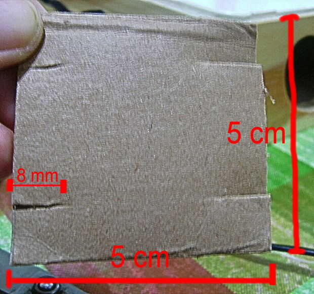 Se corta de una caja de cartón pequeños cuadros de aproximadamente 5 cm x 5 cm y se hacen cuatro conexión en el mismo como se muestra en la imagen de abajo.