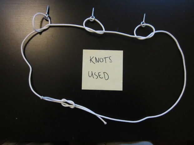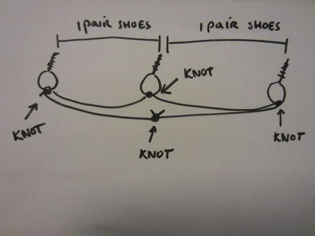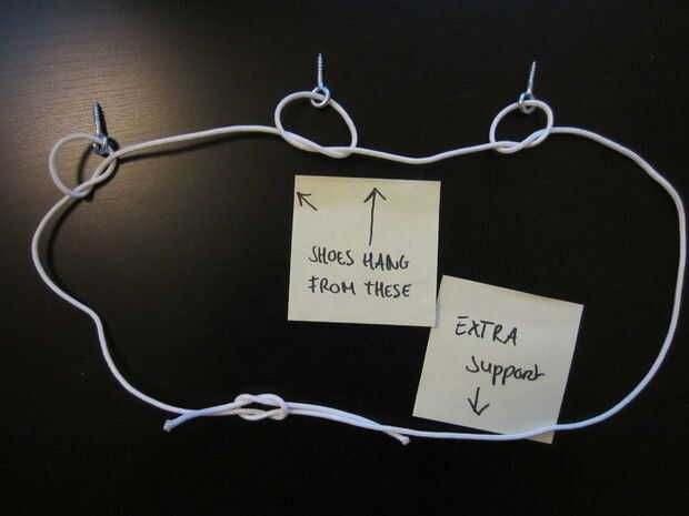 He intentado diferentes métodos para atar el cordón a la screweyes, este enfoque de doble nudo parece funcionar mejor para la celebración de los zapatos.