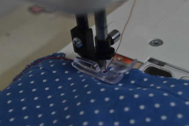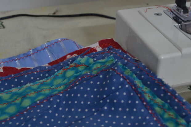 b. con la ayuda de la máquina de coser, coser los bordes del tejido rectangular con puntada zigzag.