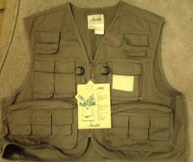 Una chaqueta de pesca! -Esta es mi parte favorita del proyecto. He intentado pensar en algo que tenía un montón de bolsillos más bien pequeños que podría utilizar como base para el organizador, y esto surgió a la mente. Además de ser conveniente, esto también le dará calle cred en Montana.