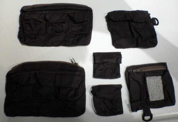 Aunque hay solamente seis fragmentos de chaleco ahí ahora, pero los dos más pequeños disponen de más de un bolsillo! En la foto de abajo, los dos a la izquierda tienen un bolsillo grande y amplio en la parte posterior, y tres pequeños bolsillos cada uno en la parte delantera. El fragmento en la parte superior derecha tiene dos bolsillos tallish, estrechos, y el fragmento en la parte inferior derecha tiene un bolsillo con cremallera en la parte superior, con un bolsillo de velcro que se accede desde el lado. Además de que tiene ese pedacito borroso en el frente.