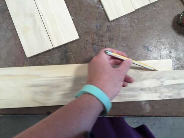 Luego, mida la mitad de la tabla menos 1/8" y dibuja una línea recta en cada junta vertical. Marca el lado más grande así que usted sabrá dónde poner sus ranuras.