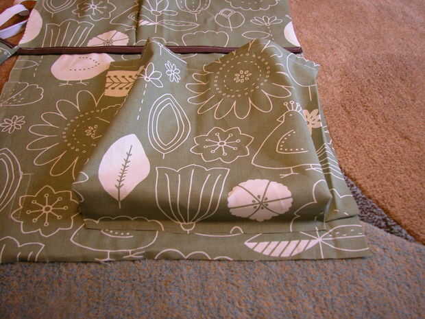 Coloque el bolsillo grande en su lugar y coser el borde inferior en el organizador. Ver imagen.