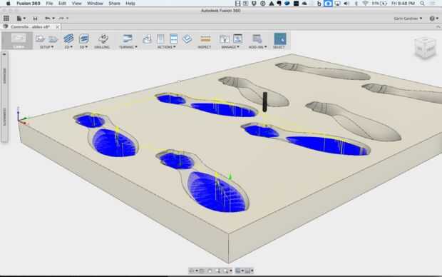 Tallar el lado izquierdo del organizador después de importar en g-code. Una vez que se ha forjado las ranuras para los controladores de izquierda, suelte el caldo y deslícelo a medio camino para poder tallar la derecha. He tomado medidas bastante pequeñas por lo que el tiempo total para esto es probable que sea alrededor de 4 horas.