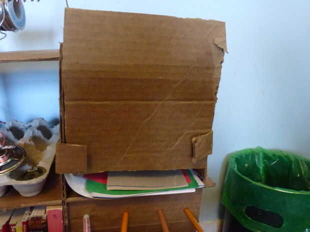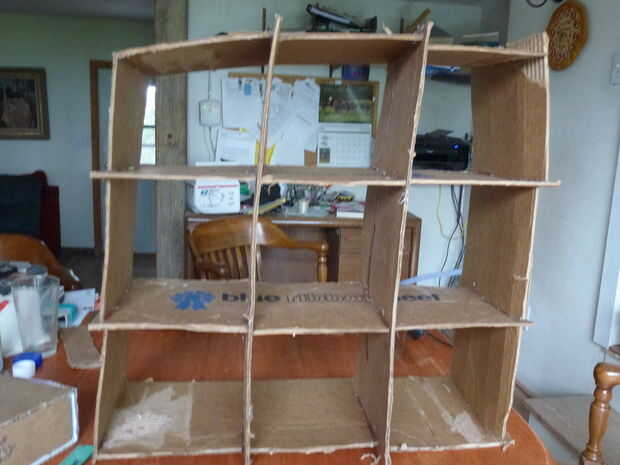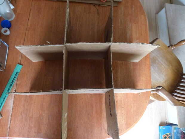 Sostenedor de papel- el sostenedor de papel que hice tiene un pedazo de cartón que se desliza hacia abajo a medida que el papel se baja, que su organizador parece más ordenado. Cortar otro cuadrado 8 "x 8" de cartón. Doble dos tiras de cartulina en un ángulo de 90 grados y pegarlos en la parte inferior del compartimiento. Por último, deslice el cuadrado de cartulina detrás de las tiras de cartón y stock del compartimiento con el papel.