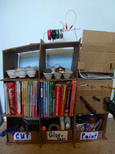 Ahora que han construido su organizador taller de cartón se pueden comprar con cualquier herramientas y suministros que desee. Trate de inventar sus propio compartimentos especializados. Inmediatamente notará una disminución grande en el desorden de su taller o laboratorio.