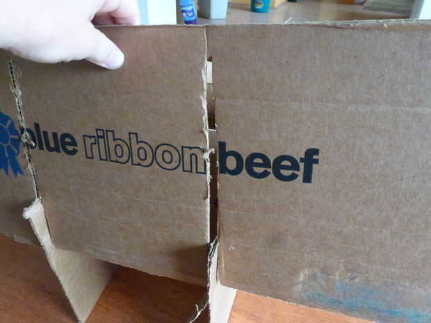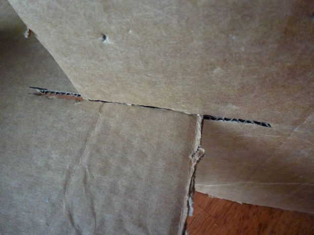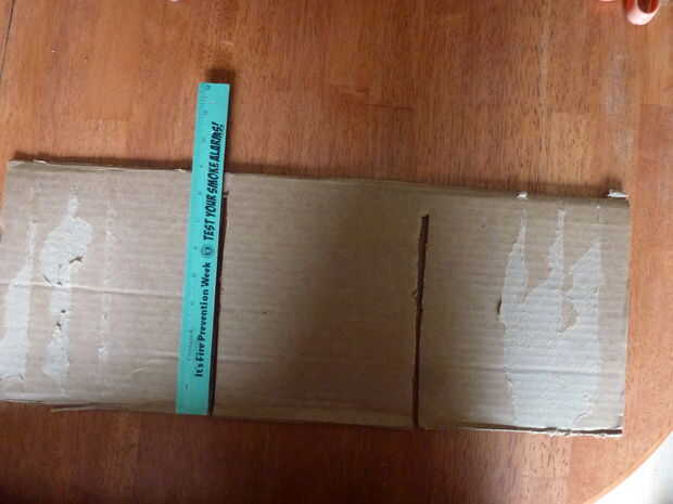Primero, aplane sus cajas de cartón, tratando de no destrozar demasiado. Si se daña el cartón, que todavía funciona lo puede llevar a cabo su forma bajo presión. Cortar 8 tiras de 9 "x 24" de cartón. Los cortes no necesitan ser exactos, pero deben ser dentro de un par de pulgadas de las medidas especificadas. Un cuchillo hobby funciona mejor para cortar las tiras de cartón, pero también va a hacer tijeras. Luego, marque cada 7.5" a 8" en las tiras de cartón para hacer 3 partes iguales. Corte en las marcas de 4.5" por medio de las tiras y 8" para la otra mitad. Hacer cada corte unos pocos milímetros de ancho así que un pedazo de cartón puede caber en ella.