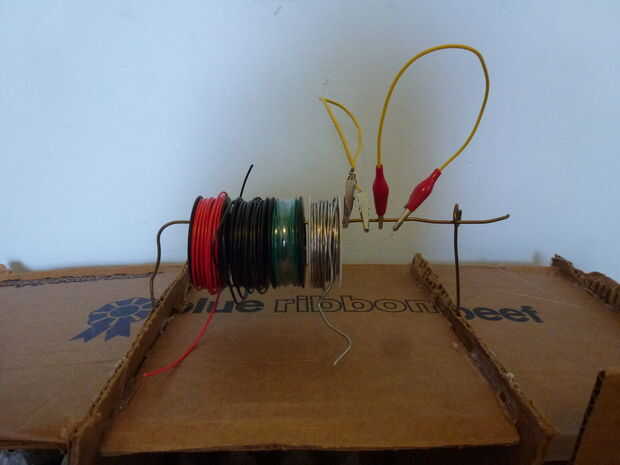 Wire / hilo de rosca / soldadura / sostenedor del Clip de piel de cocodrilo-este soporte se monta en la parte superior de su organizador y distribuye rollos de materiales fácilmente. También es un gran lugar para almacenar clips de cocodrilo cuando no esté en uso. En primer lugar, doblar las dos piernas en el extremo de un trozo de alambre rígido de 8". Deslice los rollos de materiales sobre el alambre y luego rellenar las piernas en la parte superior de su organizador.