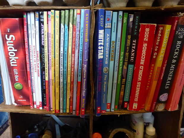 Librero- dos de los estantes del mediados utilizado para almacenar libros. Los libros deben ser bastante pequeños, pero la estantería es todavía útil para reducir el desorden en su taller.