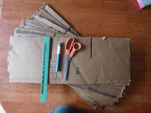 Antes de comenzar, usted necesita recoger algunos suministros. Recoger cajas de cartón corrugado grandes 5-6. Si no tienes algo en la mano, intente preguntar a una tienda de comestibles o planta para unas cajas de reciclaje. Usted también necesitará tijeras o un cuchillo de la manía, una pistola de pegamento caliente y pegamento, una regla de pulgadas, una pluma y herramientas y materiales para su organizador.