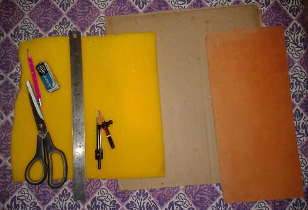 1) un cartón grueso 2) una esponja 3) regla de 4) tijeras 5) compás 6) pegamento 7) rodillo tejido 8) los cables de 9) alambre Clipper 10) cinta verde o cualquier color (opcional)