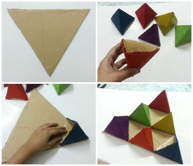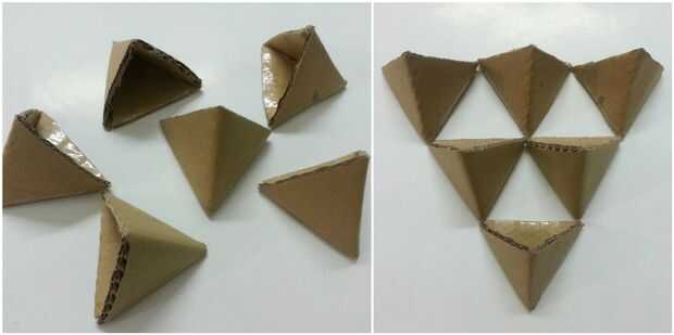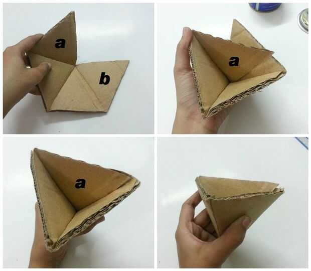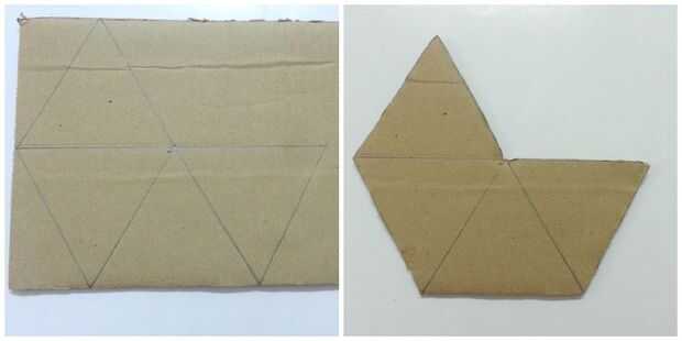Doblar el cartón a lo largo de los bordes de los triángulos,