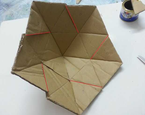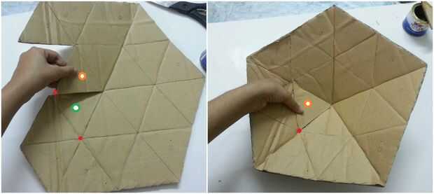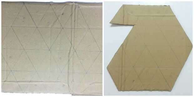 Dibujar cuidadosamente la plantilla-3 en un trozo de cartón y corte de la cartulina, esta plantilla incluye 21 triángulos equiláteros, 6 extra triángulos-que será doblado y pegado en otros triángulos del patrón principal.