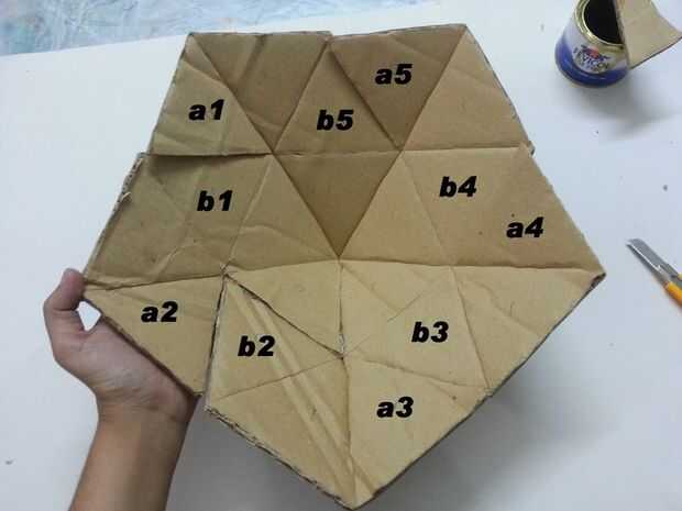 En la foto 4 he marcado 10 triángulos, 5 con a1, a2, a3, a4, a5 y 5 con b1, b2, b3, b4, b5. Vas a tener que doblar cada uno a sobre el b,