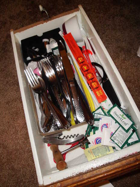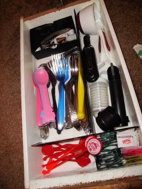 7-para los divisores de utensilio, usé papel de contacto para unir ambos lados del divisor que el separador paralelo. no cortes fueron hechos en aquél.