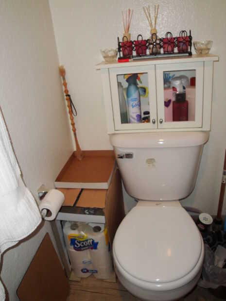 A continuación realiza un cartón gabinete para mis rollos de papel higiénico, agregar fotos a mi gabinete de blanco en el baño y hacer reed aceites de difusor.