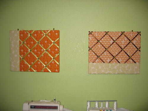 Cubrí mis organizadores de pared en tela y cinta en el orzuelo de un tablero de la nota, pero podría utilizar cualquier cubierta que te gusta. Creo que estos serían diversión utilizando ilustraciones o un marco de imagen como la cubierta, así.