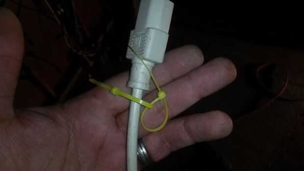 Para las verrugas de la pared doble el alambre sobre. Esto hace que encontrar una fuente de alimentación mucho más fácil. Zip empate la verruga y al final juntos para que la selección será más fácil. Luego hacer un lazo en el otro extremo y zip empate este fin también. Hago esto para que los cables no acaben torcidos y enredados juntos. Más cables en el gancho más esto es imperativo.