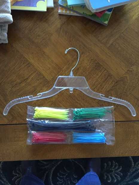 Todo lo que necesitas son ataduras de cremallera y una percha de plástico. He utilizado vínculos de 8 pulgadas y 4 pulgadas. También se necesitan tijeras.