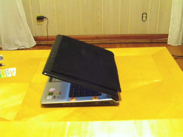 d. se adhiere a la pieza de alfombra a la laptop.