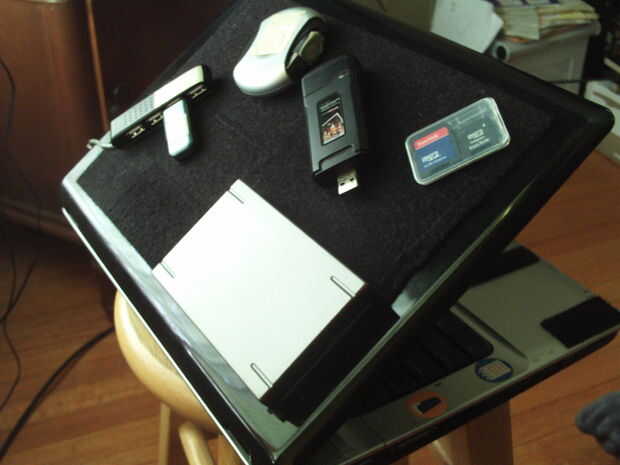 Este soporte del ordenador portátil está hecho completamente de cartón y cuenta con un útil organizador que obtiene ocultos una vez que el portátil se coloca en la parte superior. Es perfecto para guardar todos los cables y esas cosas que usted puede