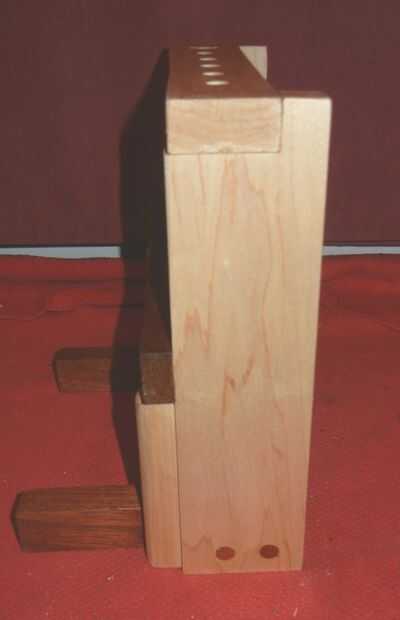Un poco más lijado y algunos poli wipe-on.  Los orificios fueron tapados con tapones de madera en contraste. Esto no es calidad gabinete, pero quería que se ven bien. La caoba y el arce hacen un bonito contraste, aunque la lija es un dolor.  Y mi escritorio se ve organizada!