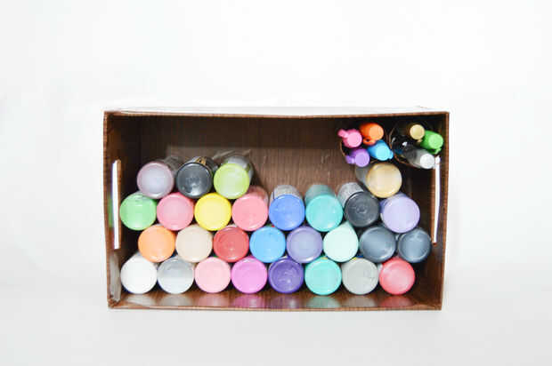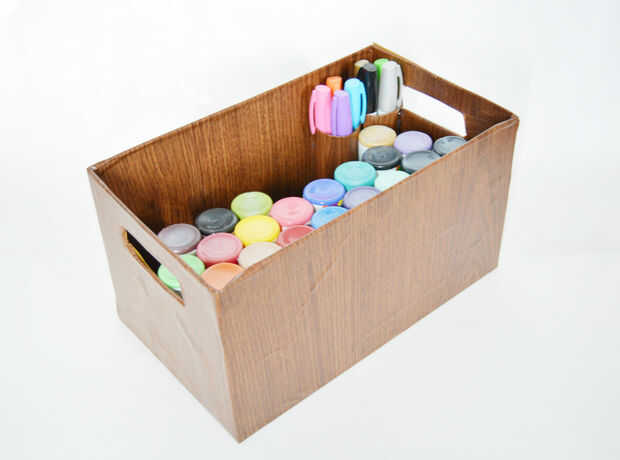 Usé esta caja con apertura hacia delante en mi estante y así actúa como un estante en un estante. Usé esto para almacenar pinturas. Pegué unos tubos de toalla de papel en la esquina para guardar las plumas de la pintura. Pintura de cosas así que todos están en el mismo lugar. Organizado y también ahorra lugar. Usted puede apilar las cestas pequeñas como para utilizar el espacio.