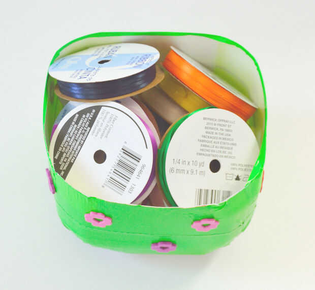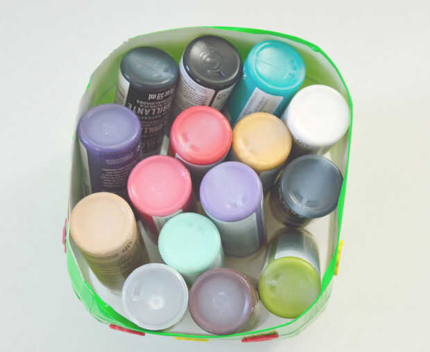2) cortar la parte superior hasta la parte inferior de la manija y usar el restante como una cesta para almacenar suministros.