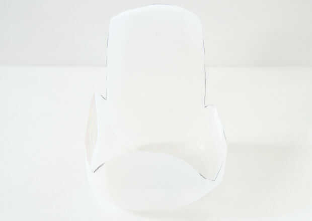 2) Marque las áreas de corte como se muestra en la imagen. Cuchillo para cortar en uso xacto. Después del corte, la pieza debe buscar como se muestra en la segunda foto.
