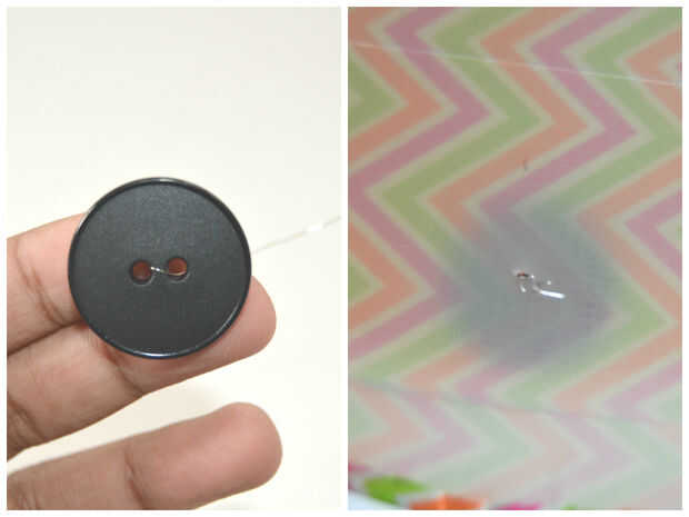 4) Hágale un agujero e inserte un trozo de alambre en el botón. Luego pasar el alambre en el orificio y gire para fijarla y cinta con un pedazo de cinta adhesiva.