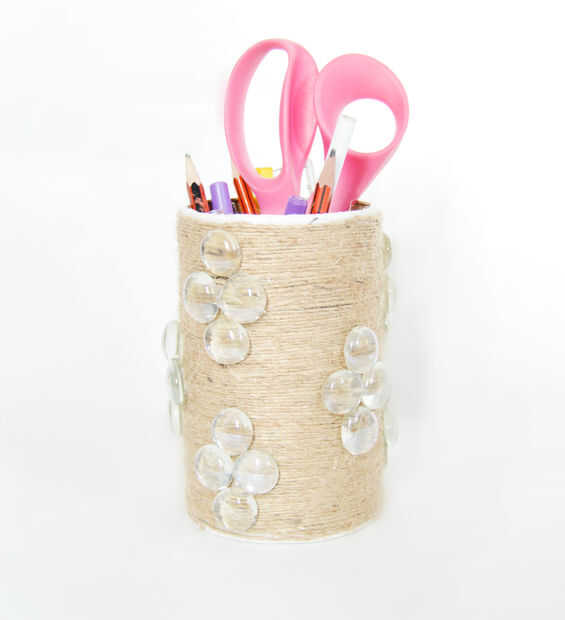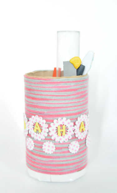 2) utilizar hilo o lana y cubrir el recipiente enrollándolo alrededor hasta que la cobertura completa. Aplique pegamento parte por parte para evitar que se resequen.